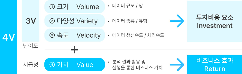 - 3V(크기, 다양성, 속도) = 투자 비용 측면의 요소