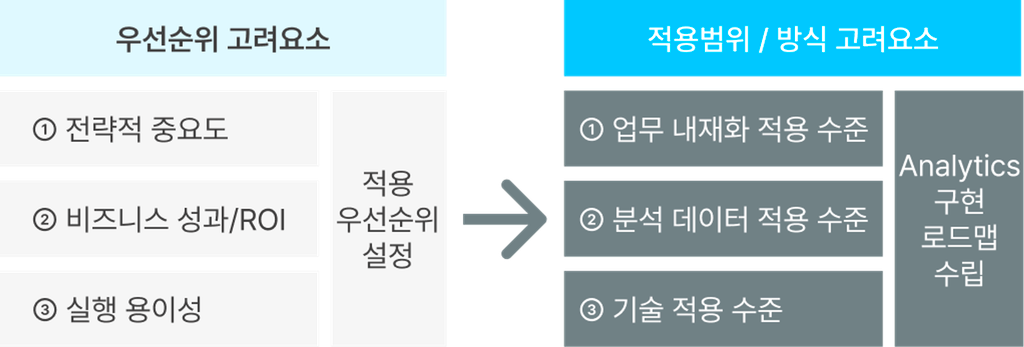 - 전사 차원에서 분석 과제의 우선순위를 선정해 수행 가능